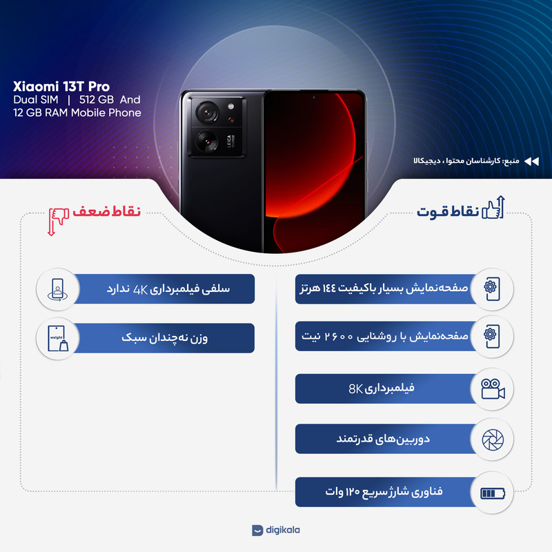 گوشی موبایل شیائومی مدل 13T Pro 5G دو سیم کارت ظرفیت 512 گیگابایت و رم 12 گیگابایت