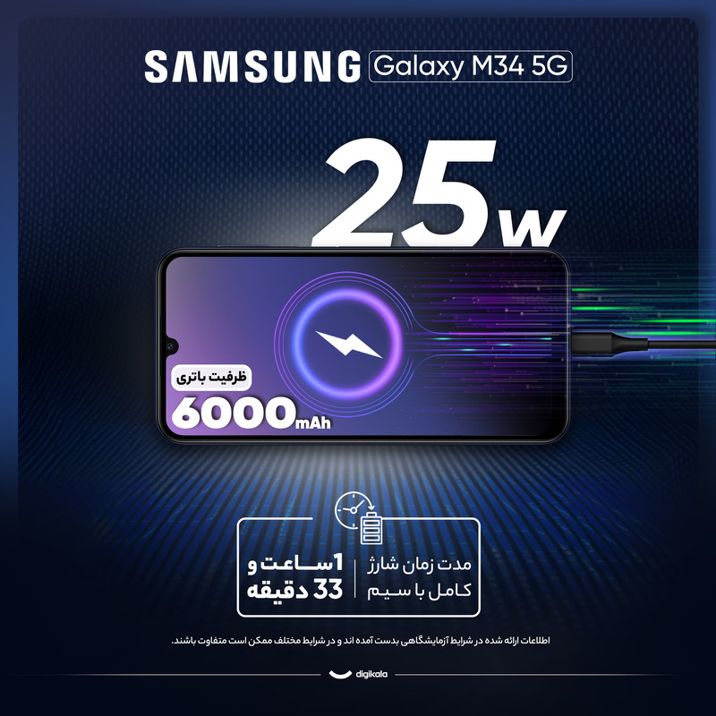 گوشی موبایل سامسونگ مدل Galaxy M34 5G دو سیم کارت ظرفیت 128 گیگابایت و رم 6 گیگابایت